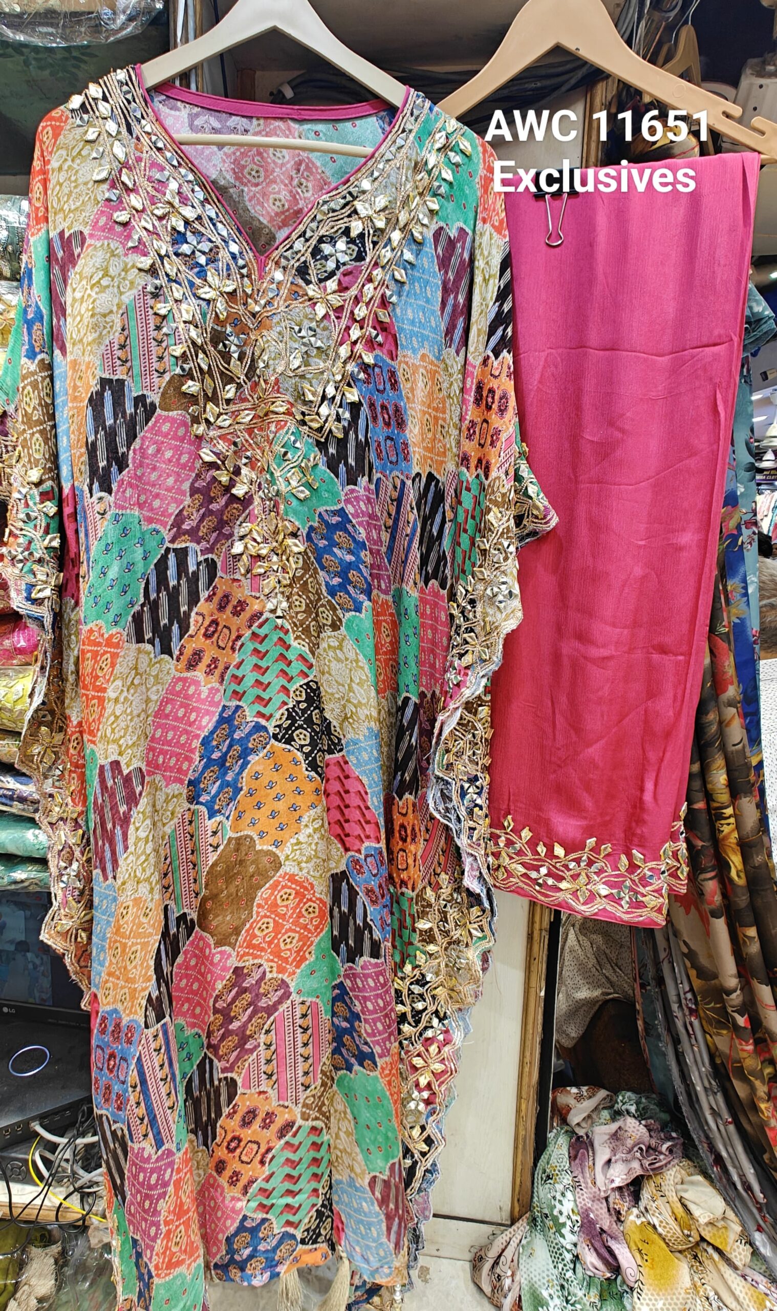 Top/Shirt: Pure chanderi silk best quality Premium kaftan with Gota,work and leather Patch work *Designer *