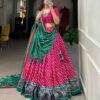 Embrace Cultural Grandeur with Our Elegant Leheriya Print Tussar Silk Lehenga Choli, Featuring a Gorgeous Patola Print Border and an Exquisite Bandhani Print Dupatta 👑