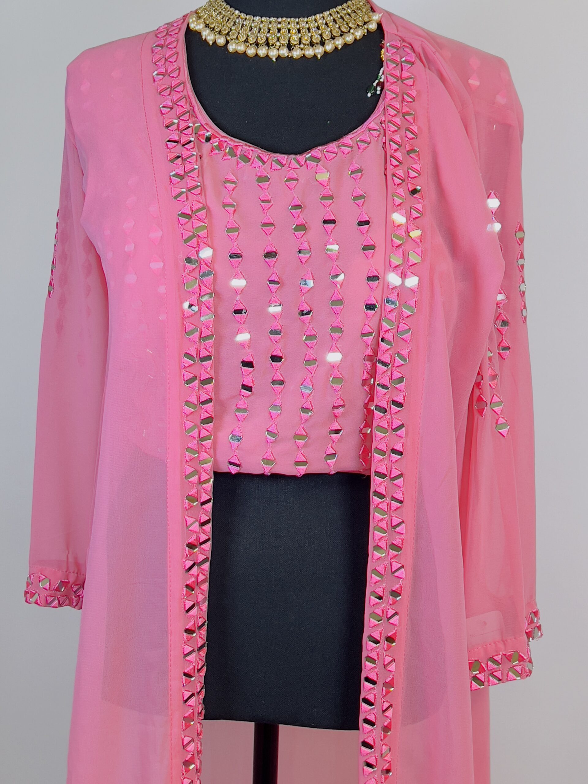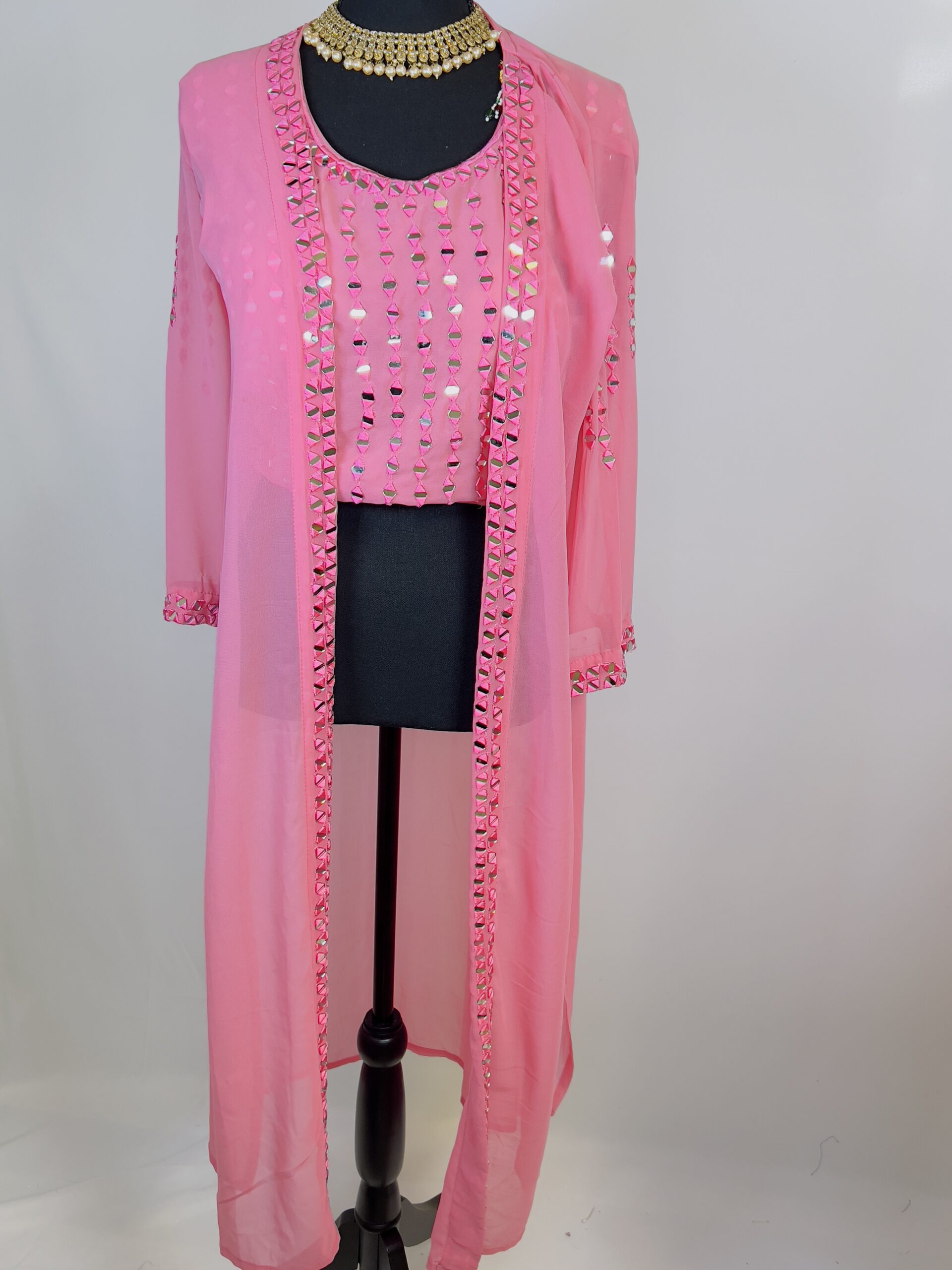 Style: Shrug, Blouse ( Crop Top) & skirt